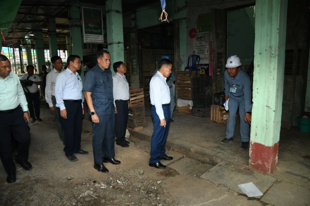 Chairman of the National Natural Disaster Management Committee Vice Chairman of the State Administration Coun-cil Deputy Prime Minister Vice-Senior General Soe Win, along with Union ministers, the Chairman of the Nay Pyi Taw Council, the Commander of the Nay Pyi Taw Command, and other officials, visited and inspected Pyinmana Town’s Myoma Market No. (1) and the Agricultural and Veterinary Science Institute (Pyinmana), which were damaged by an earthquake in the Nay Pyi Taw Council area this afternoon. Necessary instructions were given.