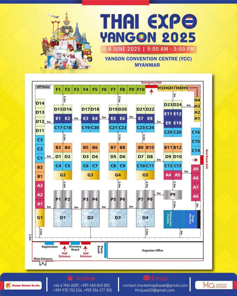 In Myanmar, Thai Expo Yangon 2025 is scheduled to take place at the Yangon Convention Centre (YCC) from June 6 to 8, from 9:00 a.m. to 5:00 p.m.