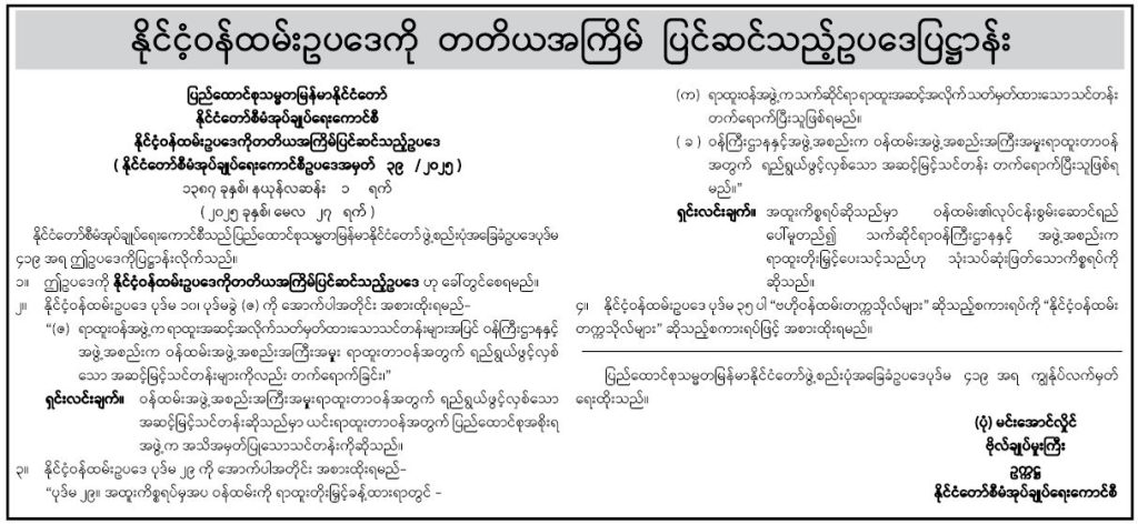 The State Administration Council as enacted this law under Section 419 of the Constitution of the Republic of the Union of Myanmar.