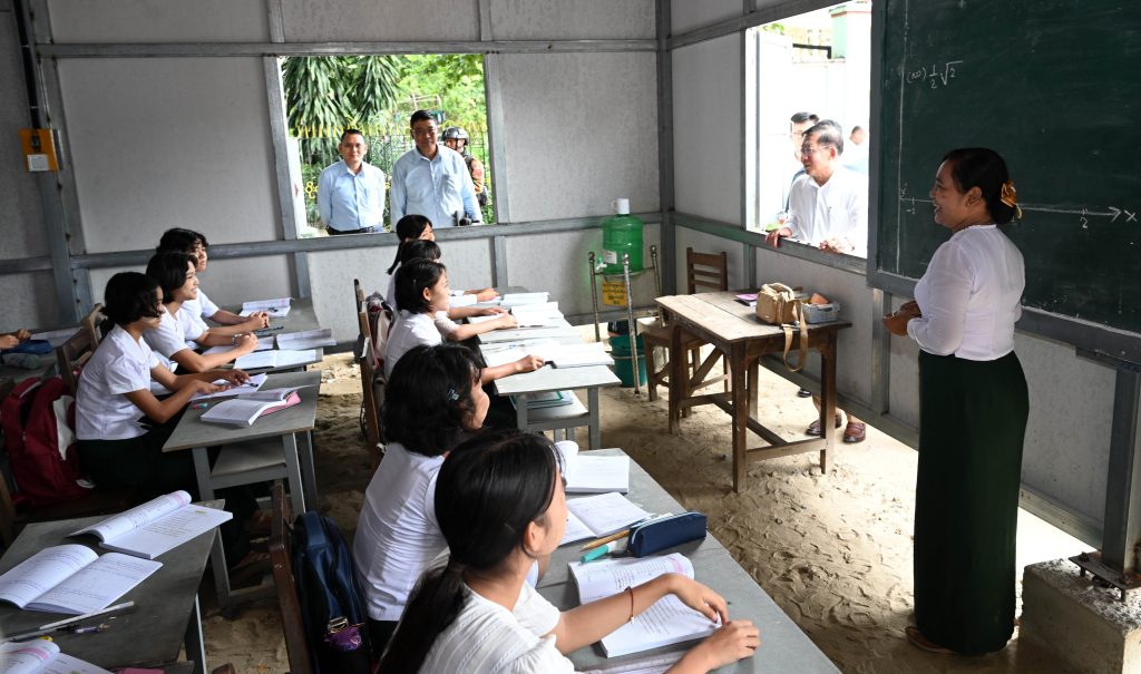Chairman of the State Administration Council Prime Minister Senior General Min Aung Hlaing, accompanied by his wife Daw Kyu Kyu Hla, Council Joint Secretary General Ye Win Oo and chief ministers of Mandalay and Sagaing regions, yesterday inspected ongoing rehabilitation operations for loss and damage caused by the earthquake in Sagaing and Mandalay.