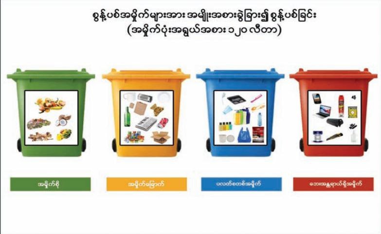 The Yangon City Development Committee and the Department of Urban Environmental Conservation and Sanitation have urged shopping malls and high-end stores within the Yangon Metropolitan Municipality to cooperate in implementing the 4 categories of waste separation.