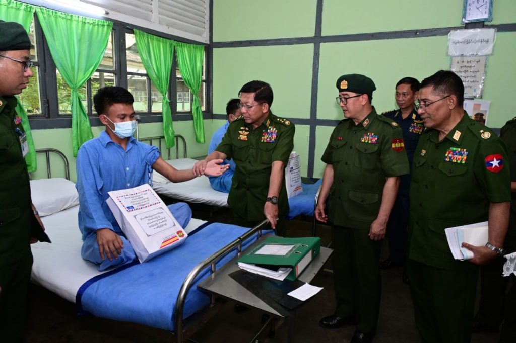 Chairman of the State Administration Council Commander-in-Chief of Defence Services Senior General Min Aung Hlaing visited officers and other ranks, who sustained injuries during their defence and security duties and were receiving treatments, at the defence services hospital in Meiktila this evening.