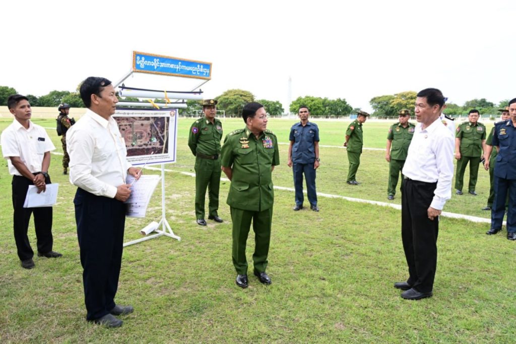 Then, the Senior General and party arrived at the district sports stadium of Meiktila District Sports and Physical Education Department and said approvals would be issued to upgrade the sports stadium and its design as it was a district-level one and to be a sports stadium with a grandstand that met district level for the convenience of spectators and gave other necessary instructions