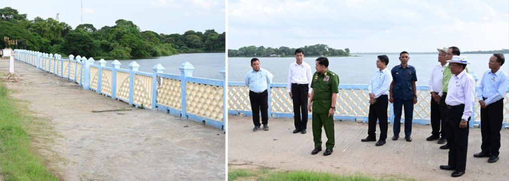 Afterward, the Senior General and party proceed to Meiktila Lake Bank (Yangon-Mandalay) road and responsible officials reported to the Senior General on damage to the lake bank due to the Mandalay Earthquake and maintenance works. After hearing the reports, the Senior General gave necessary instructions. Then, the Senior General inspec-ted the maintenance works of the lake and gave instructions on systematic maintenance of the lake bank and its pavements and creating sites for physical exercises on the lake bank to responsible officials.