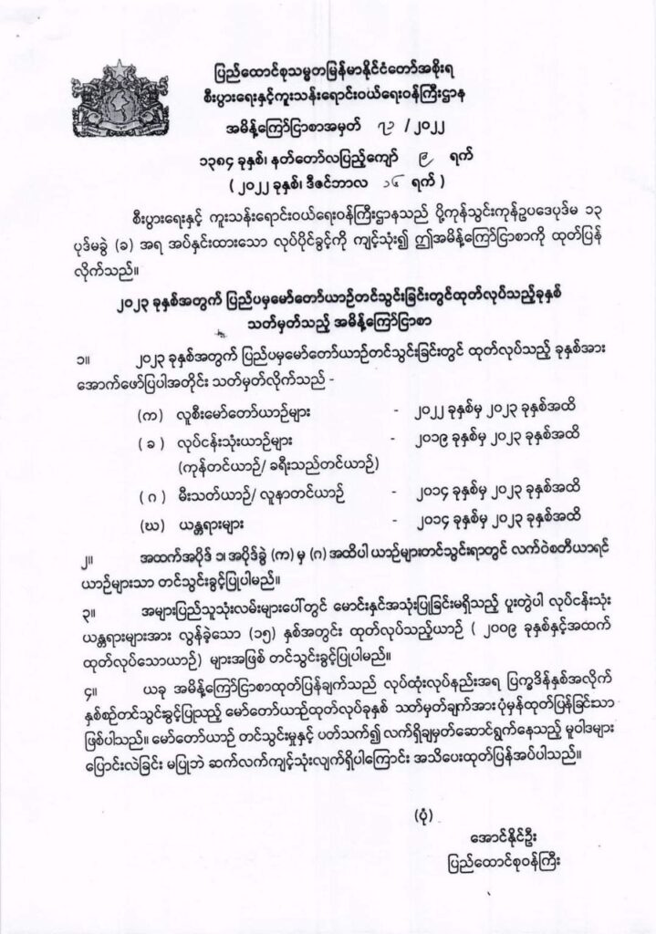 Some import policies for auto vehicles have remained unchanged. It is the yearly issued auto policy with regulations on model years, as per the statement signed by Union Minister U Aung Naing Oo of the Ministry of Commerce.