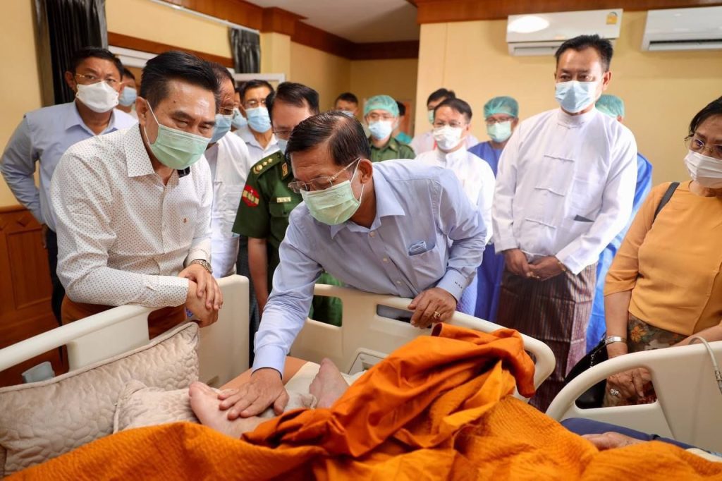 Then, the Senior General asked after his health. He asked the medical superintendent and officials about the treatment and meal services for the Sayadaw, and looked into the requirements.