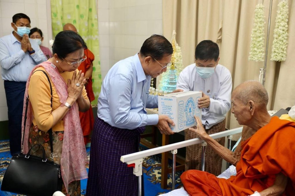 After hearing the reports, the Senior General gave instructions on closely monitoring the health conditions of the Sayadaw constantly, attending to the needs and measures to be taken for strengthening of the immune system of the Sayadaw, personal hygiene and other needs.