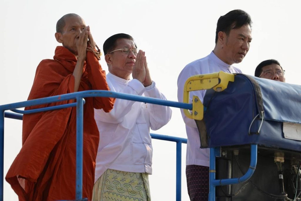 Present at the ceremony were Sayadaws led by Ovadacariya Sayadaw of Maravijaya Buddha Image Construction Patron of Mingala Zeyon Monastery, Pali University, Pyinmana, Nay Pyi Taw Sayadaw Agga Maha Pandita Agga Maha Saddhammajotikadhaja Bhaddanta Vimalabuddhi. The Senior General was acommapnaied by wife Daw Kyu Kyu Hla, Union Minister for Construction U Myo Thant, Nay Pyi Taw Council Chairman U Tin Oo Lwin, senior military officers from Office of Commander-in-Chief, the Nay Pyi Taw Command commander and officials.