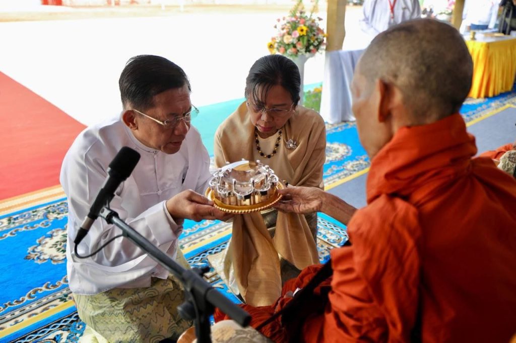 Sayadaws led by Pali Sayadaw recited religious verses to mark the success of the ceremony and share the merits gained. The congregation recited Buddha sasanamciratithatu three times to conclude the ceremony. Senior General Min Aung Hlaing and Daw Kyu Kyu Hla performed religious rites to mark the success of the ceremony.