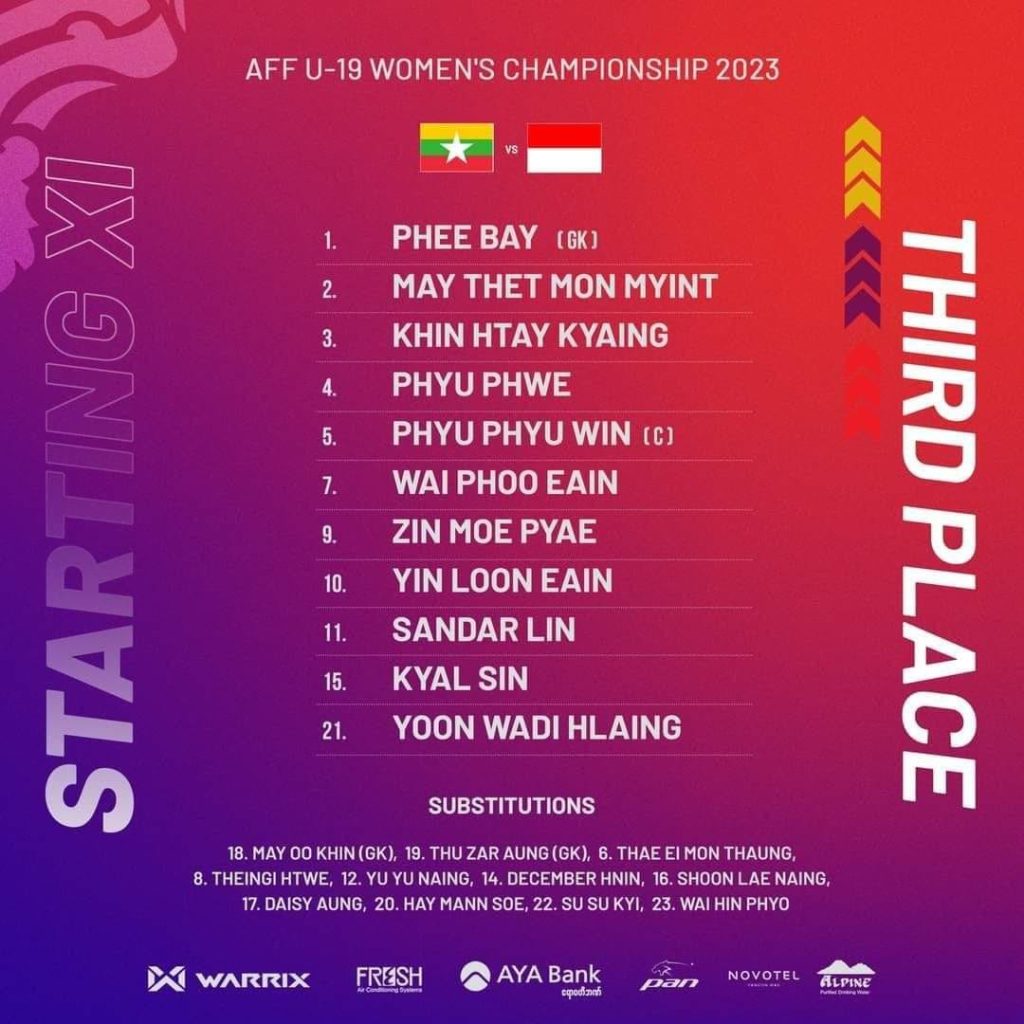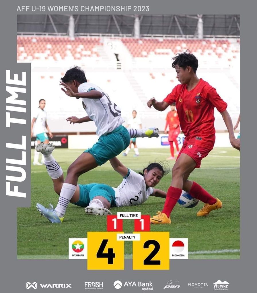 Myanmar National U-19 women football team secured bronze medal (third place) by beating Indonesia with a penalty score at the 2023 AFF U-19 Women’s Championship.