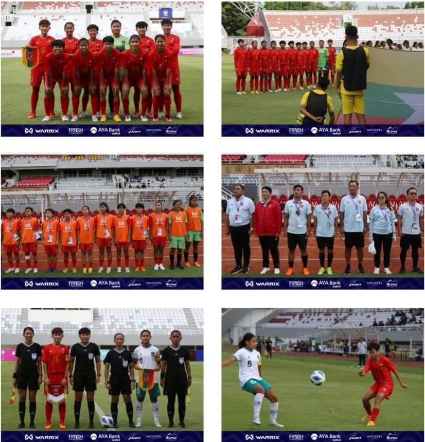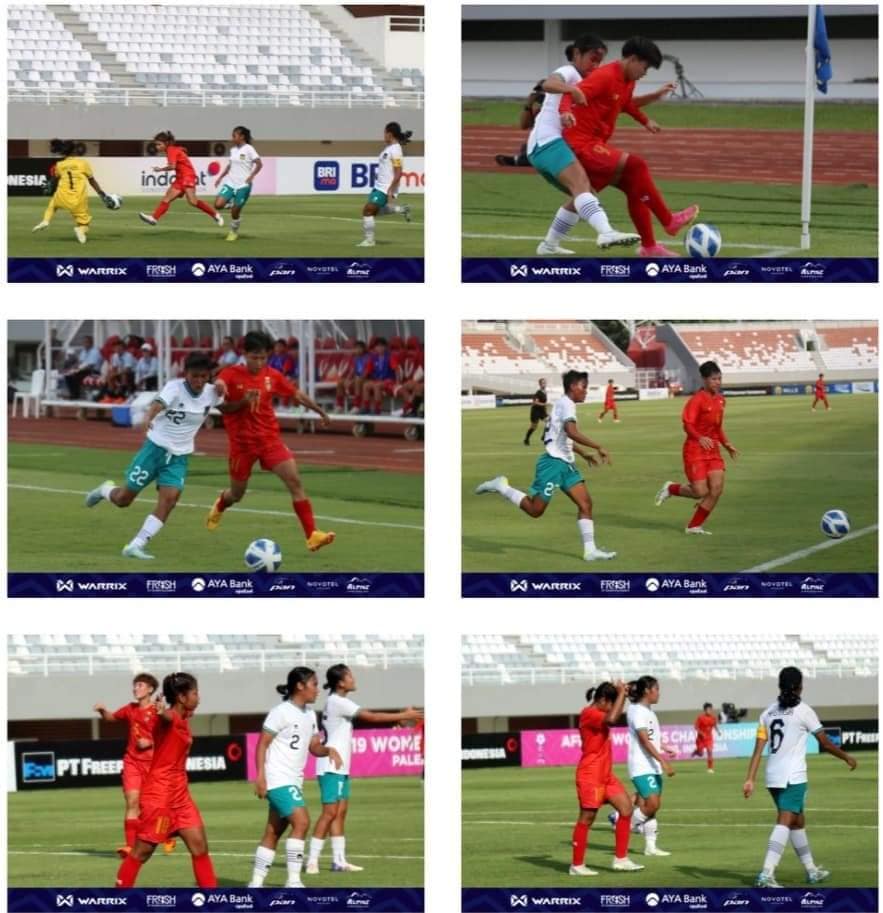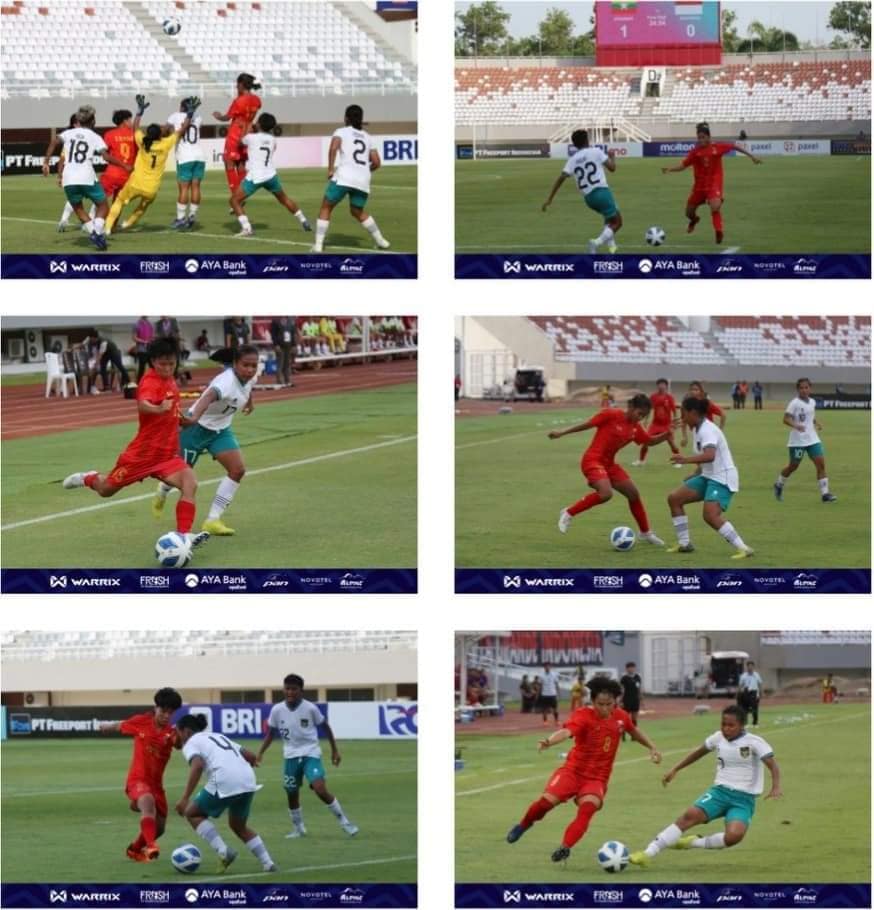 Indonesia, the host country, played with might and main and the Myanmar women team’s defender and goal keeper made defends.