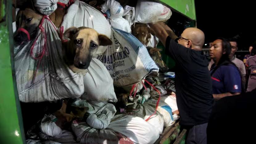 Indonesian police have intercepted a truck carrying more than 200 dogs shackled and bound for the slaughterhouse. It is the latest victory for activists who oppose eating dog meat. The vehicle was detained late Saturday night (Jan 6) in Semarang city on the island of Java, where the imperilled pooches were discovered in the bed of the truck with their legs and mouths bound.