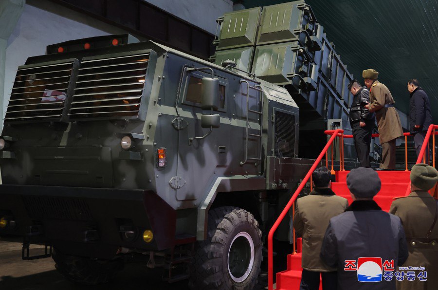 KCNA photos of Kim’s visit to a munitions factory showed him inspecting mobile short-range missile launch vehicles.