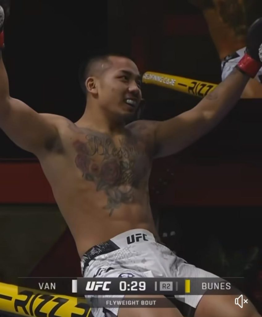Burmese-born Chinese fighter Joshua Van won the UFC match by knocking out his opponent in the second round, as predicted.