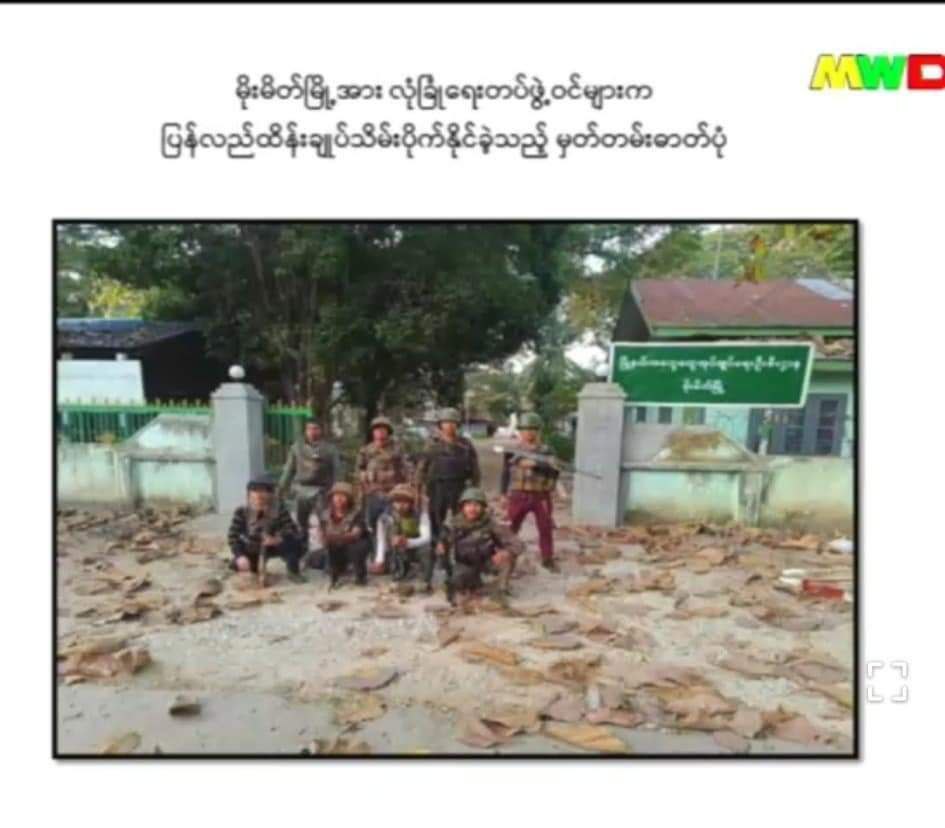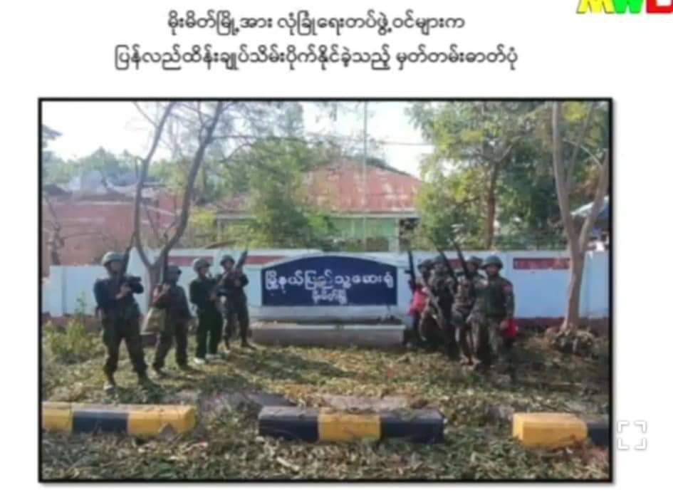 Some Tatmadawmen fell or were wounded during the armed engagements. Tatmadaw troops seized heavy weapons and light arms, ammunition, bombs, some bodies of terrorists, and equipment and accessories used in committing terrorist attacks. Many buildings in the town were damaged as KIA, TNLA and PDF built bunkers at homes, religious buildings, and department buildings in launching terrorist attacks. Security forces were systematically clearing the terrorist-planted mines place wise and road wise for the safety of townspeople.