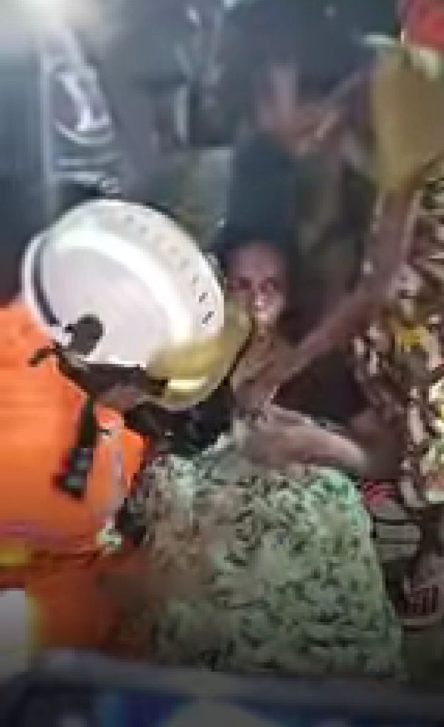 Mawlamyine Fire Department pulled the woman into the water well, went down the stairs and helped rescue them, and they were taken to the hospital by BoBo Win Recuse Team.