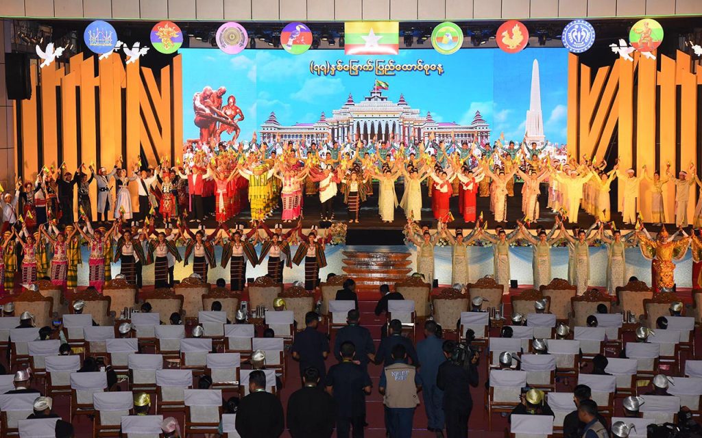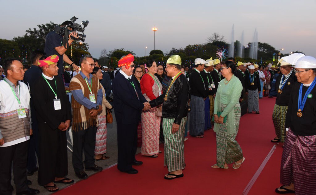 SAC Chairman and his Spouse hosted a dinner in honour of the 77th Anniversary of Union Day 2024 at the square of the city hall of Nay Pyi Taw yesterday evening. The Senior General and his Spouse, and the Vice-Senior General and his Spouse greeted ethnic traditional cultural troupes from regions and states, chairpersons and representatives of political parties, NCA signatory Ethnic Armed Organization leaders and representatives, economic ministers and ethnic affairs ministers of regions and states, MSME businesspersons, senior military officers from the Office of the Commander-in-Chief and their wives, Union ministers, Union-level dignitaries and their wives, SAC members and their spouses, and the Council Secretary and wife.