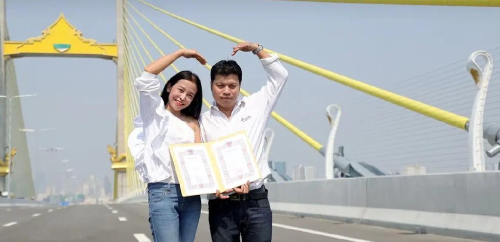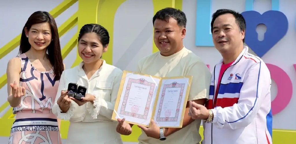 At the festival, 111 couples were married on the bridge, in honor of the 111th anniversary of the establishment of Thailand’s Ministry of Transport. Couples will also have the chance to win diamond jewelry worth over 200,000 baht, which will be awarded by Jubilee Diamond, an online diamond trading company in Thailand.