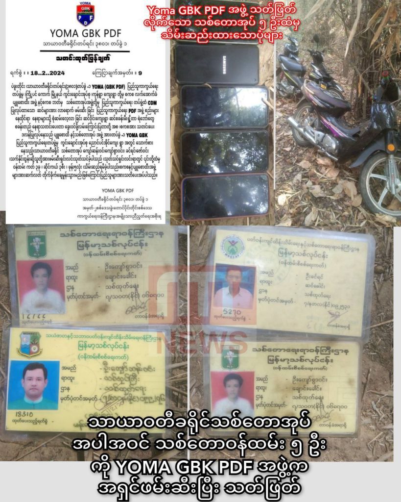 According to the Bago YOMA GBK PDF – Tharawati District Battalion 38015, they arrested and then killed 5 forest service men, including the Tharawati District Forester.