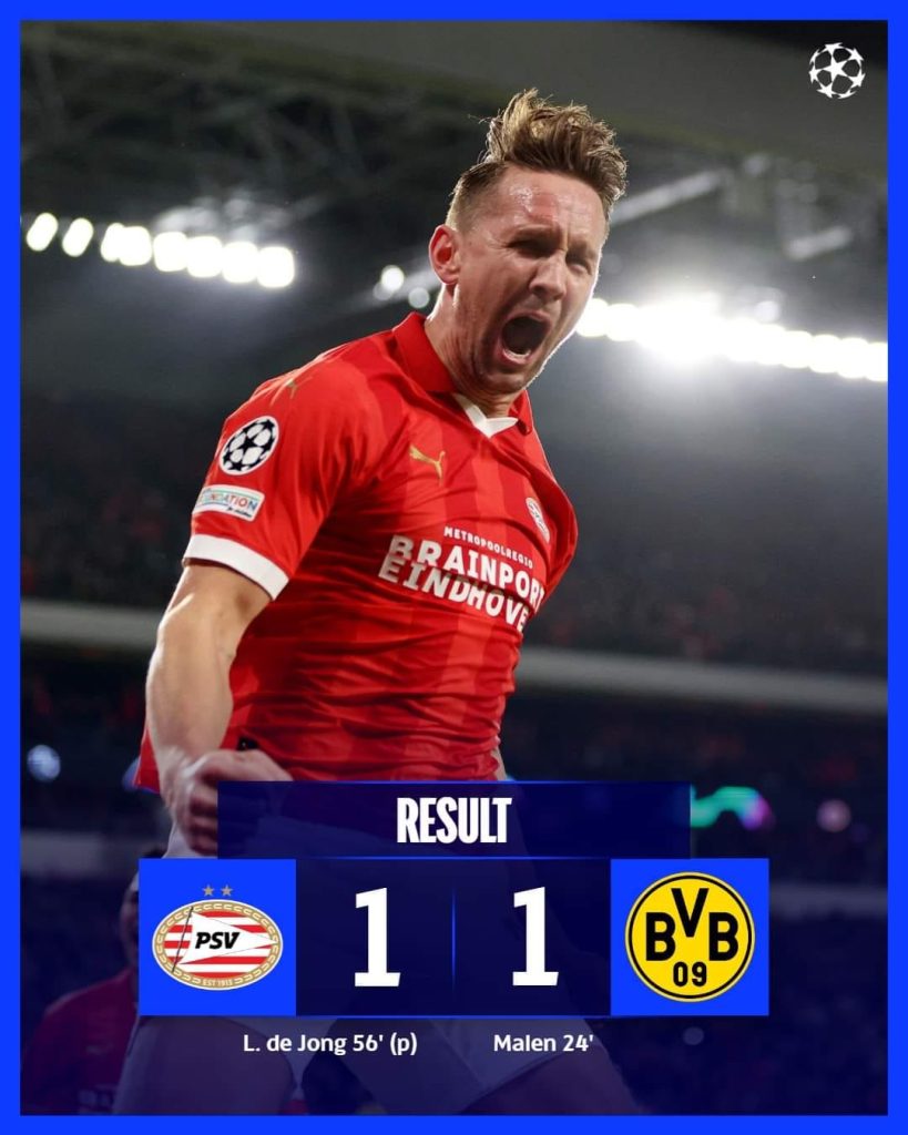 In this match, Dortmund led the hosts in the first half with Donyell Malen’s goal. In the 56th minute of the second half, De Jong scored an equalizer for PSV from a penalty.