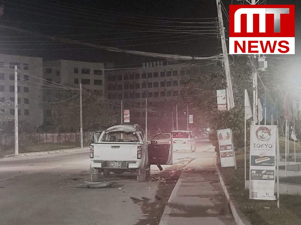 According to local news, an explosion occurred inside a vehicle that was driving near the Golden Eagle Golf Course in Tachilek yesterday night. The driver sustained critical injuries on his stomach and hands and is receiving medical treatment.