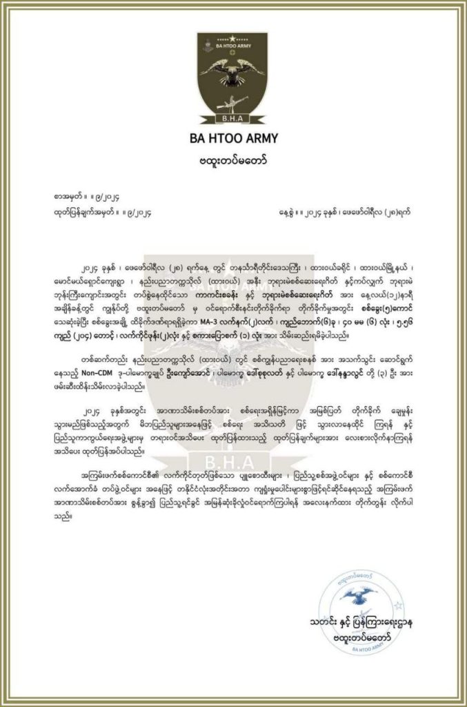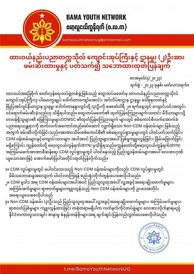On February 28, Dawei PDFs named Ba Htoo Army arrested the principal of Dawei Technology University (Second: Rector Dr. Kyaw Aung), the English Department of Head Prof. Daw Su Su Lat and the Civil Engineering Department of Head Prof. Dr. Nanda Lwin. After the Dawei Democracy Movement Strike Committee (DDMSC) demanded the immediate release of the innocent, the Burmese Youth Network again requested the immediate release of the three teachers arrested by the Ba Htoo Army because they were innocent.