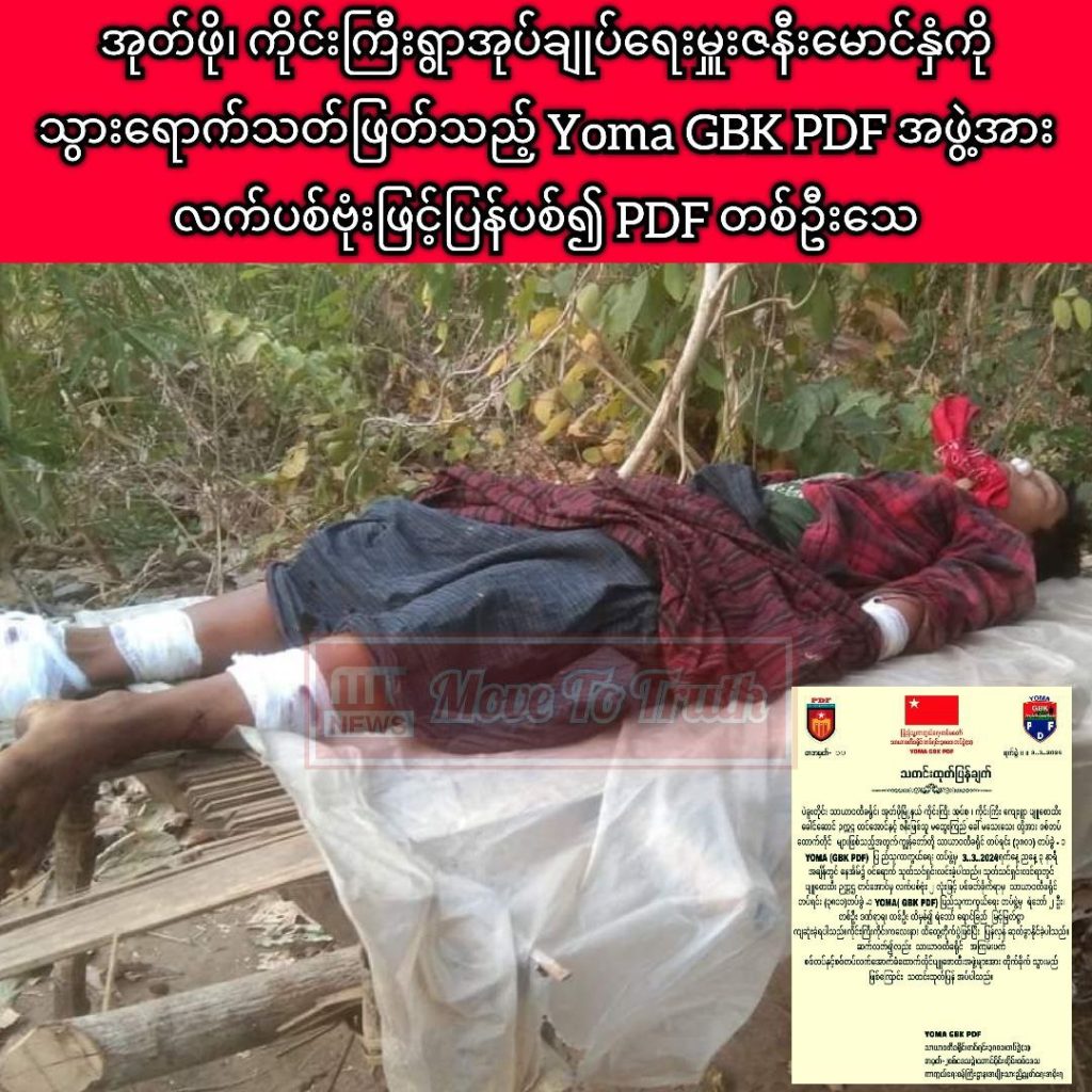 Even though the Yoma (GBK PDF) group attacked and killed them with a large force, militia leader U Tin Aung returned fire with 2 grenades, and two PDFs were hit, one PDF was injured, and PDF Comrade Yaunggyi was killed by the bomb.