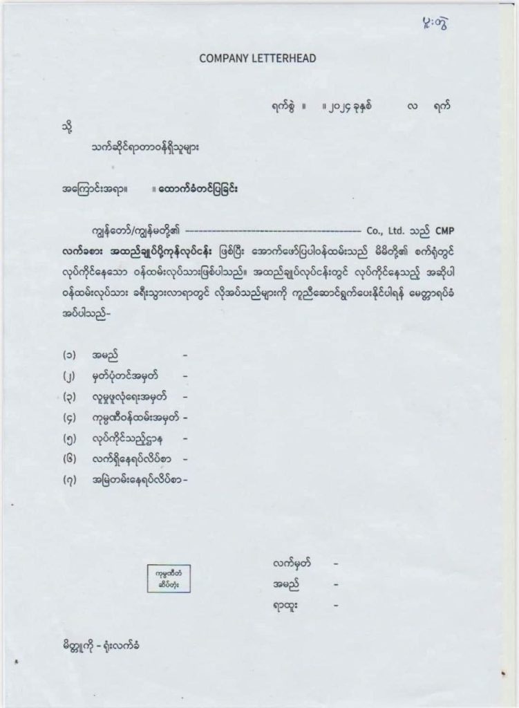 According to the statement, it states that as the factory owners made a letter of recommendation, in which their company is a CMP pieceworker and the following employee is a staff worker in their factory, and the employees working in the garment factory the request must be made in writing to be able to assist with travel needs.
