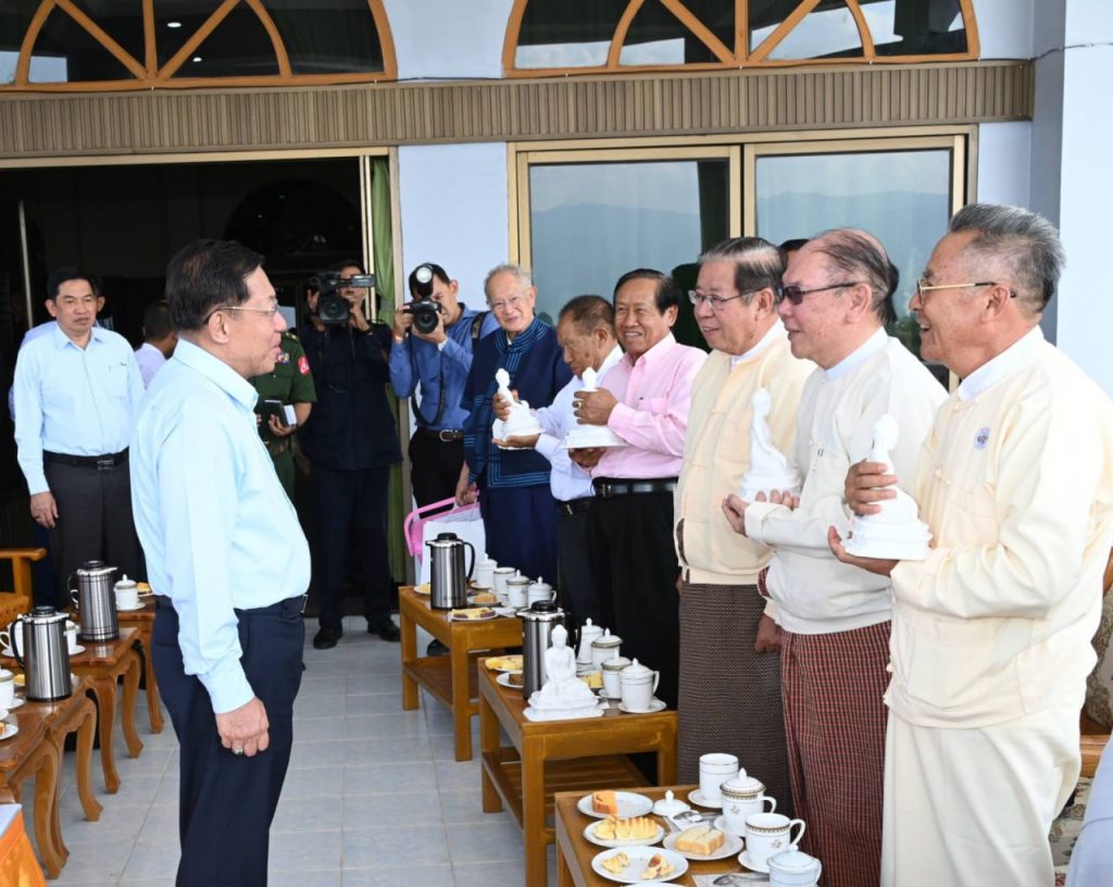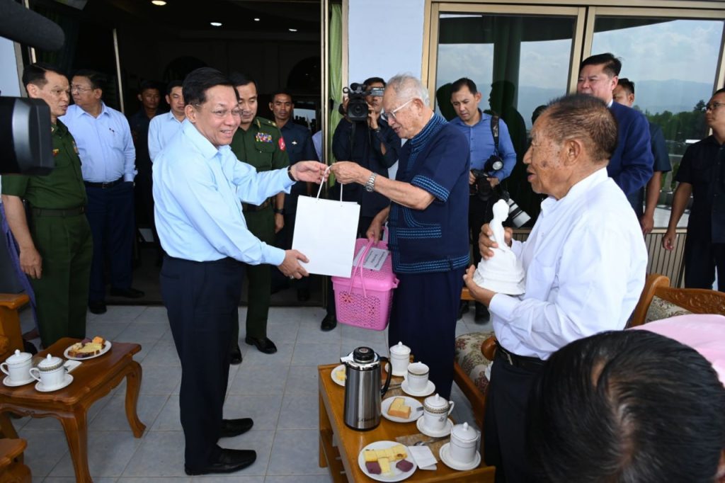 Present together with the Senior General were SAC Joint Secretary Lt-Gen Ye Win Oo, SAC members General Mya Tun Oo, Lt-Gen Nyo Saw, union ministers, the Shan State chief minister, senior military officers from the Office of the Commander-in-Chief, the Triangle Region Command commander, local people and officials.
