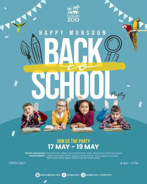 The Happy Monsoon & Back to School Festival at the Yangon Zoo will be held for 3 days from May 17th to May 19th.