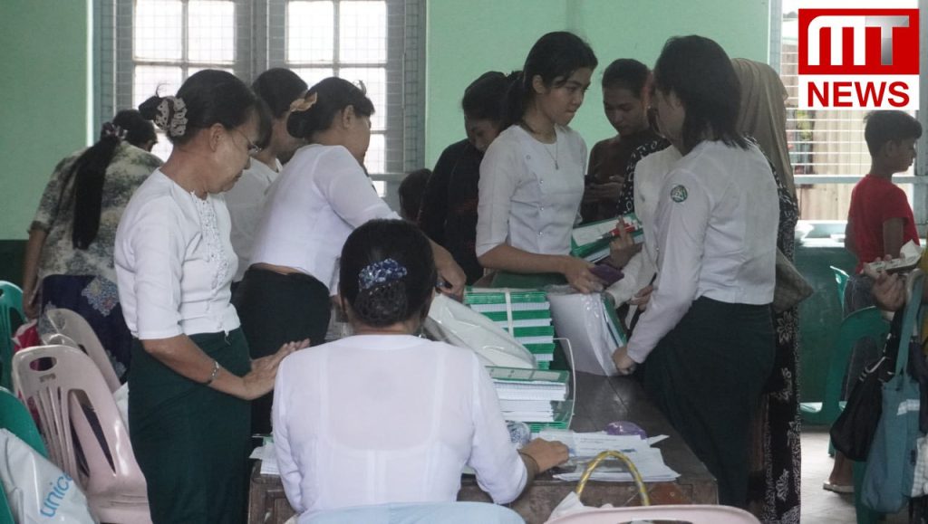 “The school uniform is for all primary students up to Grade 5. We give each other a pair,” said a teacher who is accepting enrollments at the 6th school in Botajung Township.