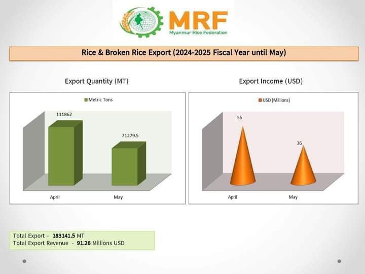 Therefore, with the cooperation of the national government and the private sectors, in the current fiscal year 2024-2025, we are aiming to increase the export of rice and broken rice to 2.5 million tons to earn foreign income of more than one billion dollars, U Ye Min Aung, Chairman of the Myanmar Rice Federation, told MT News. In this fiscal year, the export volume has been increased by more than 30 percent over the previous year.