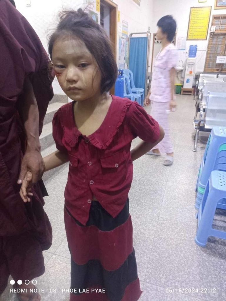 The incident took place on June 18 at around 10:00 p.m. A monk at Aung Myay Oo Monastery called the Obo Health and Rescue Association to report that a child had been bitten by a dog and went to the scene to help.