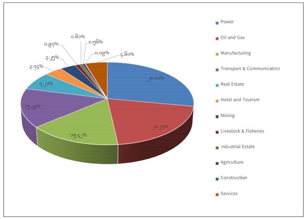 Among 53 countries and territories that have invested in Myanmar until the end of June 2024, Singapore, China and Thailand are the leading investors in 12 economic sectors, with 28.45 per cent of the total investment in the energy sector, with 24.41 per cent in the oil and natural gas sector and 14.45 per cent in the manufacturing sector.