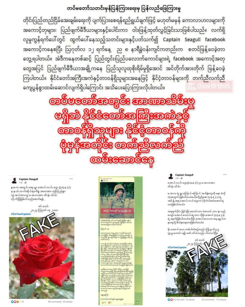 The full response of the Tatmadaw news agency is, “Fake accounts and subversive media are spreading false rumors with the aim of disrupting the peace and stability of the country.” Regarding the current news on social media, it started to be distributed from Captain Seagull’s Facebook account at around 8:30pm on August 12th. Through that, fake Facebook accounts of local and foreign criminals, as well as some subversive media outlets, were actively spreading the public’s concern. “I would like to inform you that the head of state and officials are fulfilling their national duties together,” replied.
