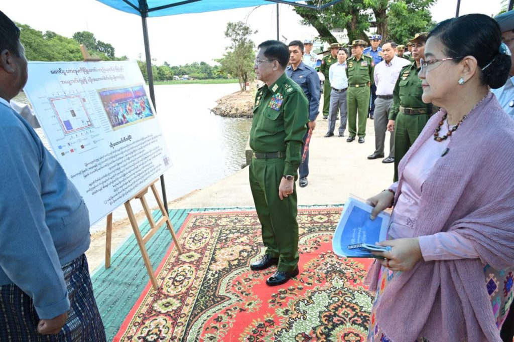 At the meeting hall of the airbase, Deputy Minister for Religious Affairs and Culture Daw Nu Mya Zan reported on points and historical records of ancient Kaytumadi, location of the wall and moat, field trip reports on Kaytumadi palace site, points of the forts, excavation and research of the wall and moat, SAC member Union Minister for Home Affairs Lt-Gen Yar Pyae on new Taun goo prison project, SAC member Deputy Prime Minister Union Minister for Transport and Communications General Mya Tun Oo on Taungoo detour railroad project, destruction of the sections of Bago-Taungoo railroad by terrorists and repair of the damage sections to ensure uninterrupted transportation, Union Minister for Construction U Myo Thant on new ward establishment project in Taungoo, and the Bago Region chief minister U Myo Swe Win on points of Taungoo District and regional development undertakings.