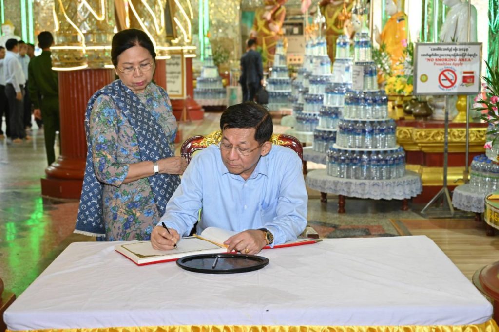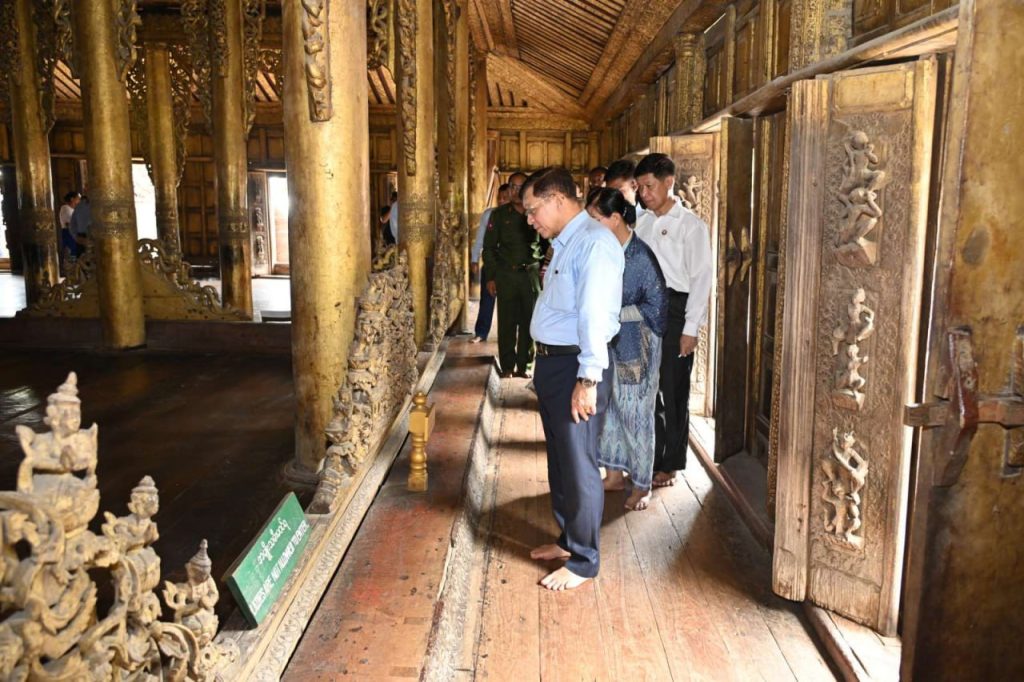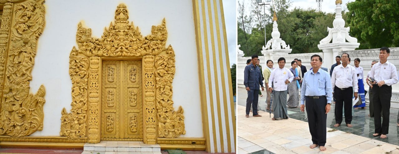 Chairman of the State Administration Council Prime Minister Senior General Min Aung Hlaing, accompanied by his wife Daw Kyu Kyu Hla, SAC Joint Secretary General Ye Win Oo and his wife, council members General Maung Maung Aye and his wife, Lt-Gen Yar Pyae and General Nyo Saw and his wife, Union ministers U Min Naung and U Myo Thant, senior military officers from the Office of the Commander-in-Chief, the commander of Central Command and officials, inspected maintenance and preservation of ancient historical religious edifices and cultural heritages in Mandalay and paid homage to eminent pagodas.