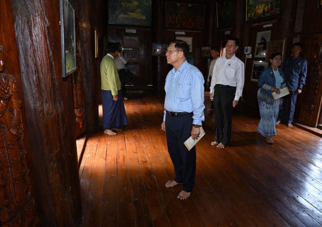 Then, they inspected the maintenance to the teak monastery and paid obeisance to statues of heads of the Shwekyin sect and viewed the photo gallery before giving necessary instructions on reports of officials for durability of the monastery and other needs.