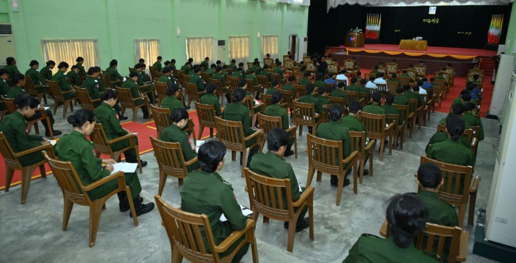 After completing the officer training course, it is necessary to maintain oneself in a disciplined manner to become good officers, acting with a sense of awareness in carrying out the assigned duties. It is also important to continuously engage in reading and studying literature and knowledge that will benefit oneself. If consistent study and reading are maintained, it will assist in effectively performing one’s duties. Additionally, there should be efforts to utilize and share the knowledge gained from reading. Through reading, memorizing, and discussing, one should aim to strengthen their knowledge. In fulfilling their duties, they must strive to become reliable and trustworthy female officers for the nation and the Tatmadaw.