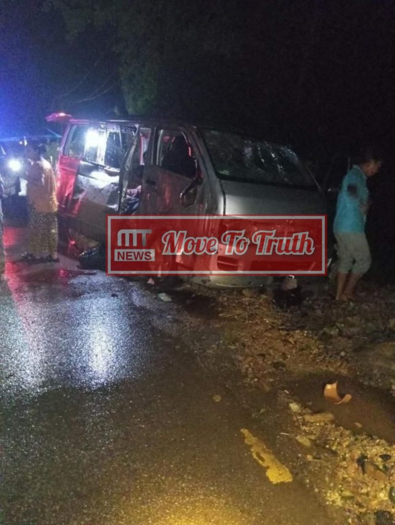 It occurred in Mon State, Thaton Township, near Ka Mar Sai village, where a KNU and PDF team attacked the BGO-11 3Q- —- TOYOTA HIACE passenger vehicle traveling from Thaton to Bilin between the 6th and 7th furlongs of Mile 133 on the Yangon-Mawlamyine highway on September 1 at 9:30 p.m. As a result of this mine explosion, 37-year-old U Phyo Wai Kyaw, who was driving the vehicle, and 31-year-old U Kyaw Myo from Min Kyae Village in Thanatpin Township, Bago Region, both succumbed to their injuries and died in the incident. In addition, Daw Khin Than Win (60) and Ma Phyu Sin Min (29) from Kyun Gyi Village in Thanatpin Township, Ma Yin Yin Nwe (31) from Min Village, Daw Cho Mar (52) from Fa Ye Village, and Ma Win Win Htwe (33) from Kyu Chaung Village were also injured when a mine exploded. It is reported that the wounded were taken to Thaton Hospital.