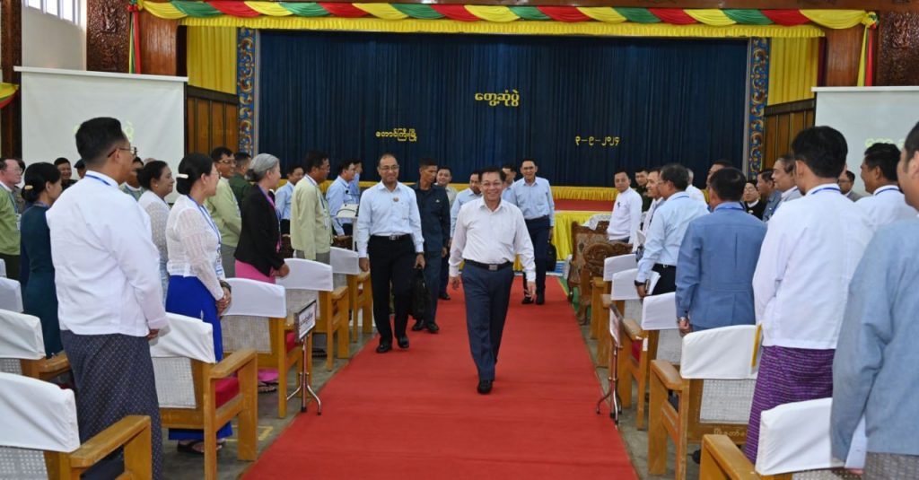Chairman of State Administration Council Prime Minister Senior General Min Aung Hlaing met members of Shan State cabinet, state and district level departmental officials at the city hall of Taunggyi this morning.