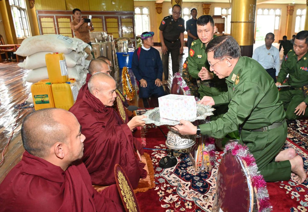 Then, the Senior General paid homage to assistant abbot of Zawanarama Monastery Bhaddanta Pannasila and members of the Sangha and donated offerings.