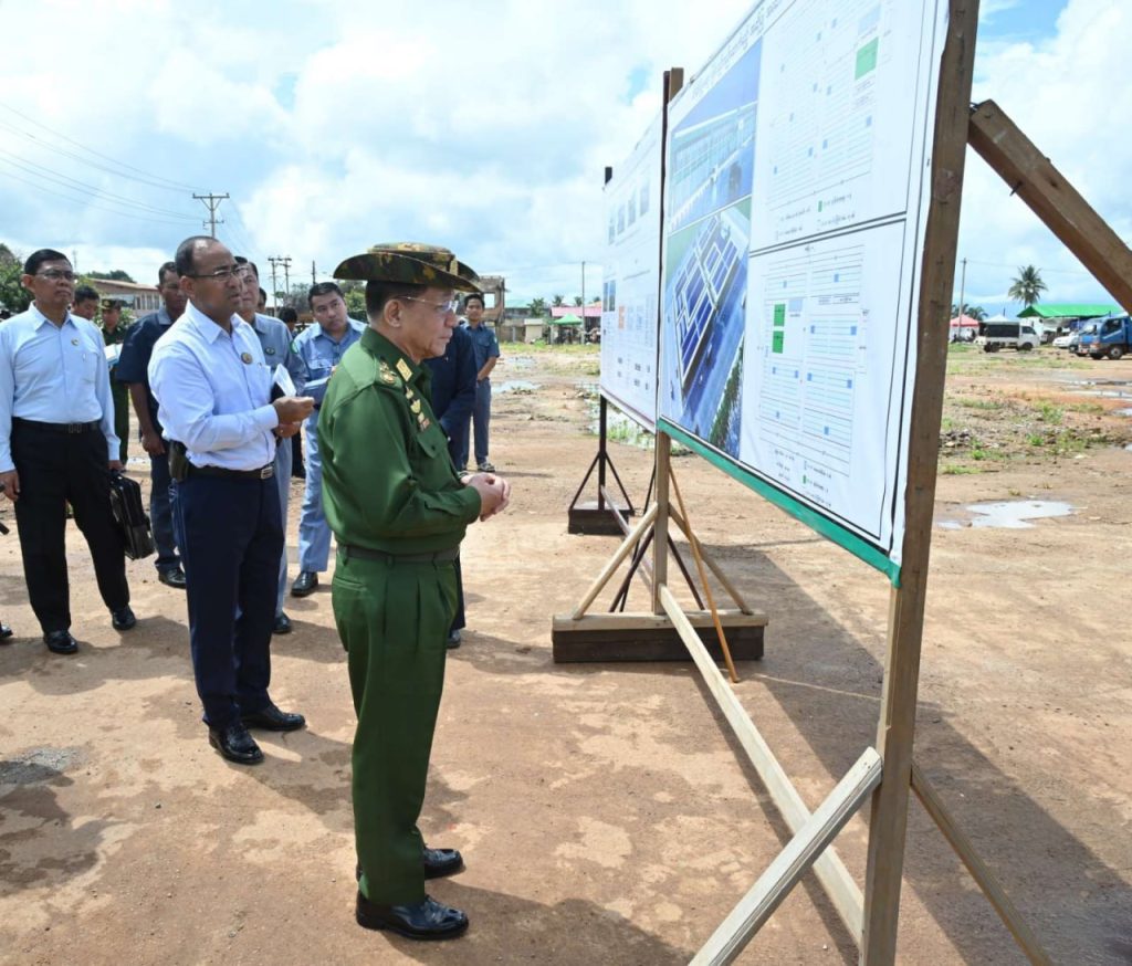 This morning, Chairman of the State Administration Council Prime Minister Senior General Min Aung Hlaing, accompanied by his entourage, the Chief Minister of Shan State, the Commander of Eastern Command, and officials inspected rehabilitation process in Hsihseng region.