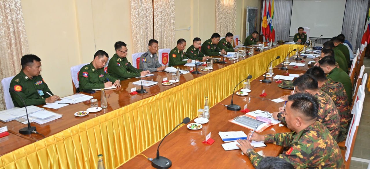 First, Region Military Command (Loikaw) Commander Col Aung Kyaw Khaing reported to the Senior General on security measures taken by Tatmadaw personnel in cooperation with members of the police, security and Loikaw and Loikaw Airport, security of roads and bridges, efforts for stability in respective stations, attempts of KNPP, KNDF and so-called PDF terrorists to destabilize the region, arrests of so-called PDF terrorists and seizures of weapons and ammunition.
