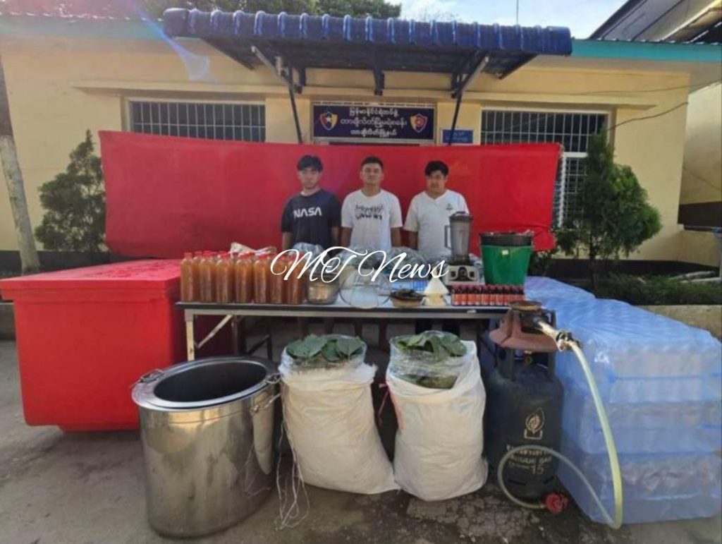 As it was reported that liquid opium and opium leaves were being sold in a house in Mekong Ward (2), a joint team comprising Tachileik District Police and officials from Tachileik District searched and discovered Thai nationals Pisit (b) Porntha Wonsuk and Sai Tun Hla, along with Sai Swe Aung, who were found in possession of liquid opium leaves and opium leaves.