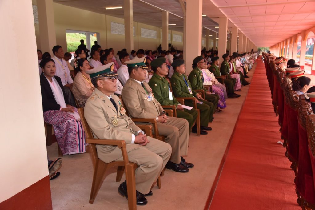 Also present at the ceremony together with the Senior General were wife Daw Kyu Kyu Hla, Chief of General Staff (Army, Navy and Air) General Thiri Pyanchi Sithu Maung Maung Aye and wife, Commander-in-Chief (Navy) Admiral Zeya Kyawhtin Htein Win and wife, Commander-in-Chief (Air) General Zeya Kyawhtin Sithu Tun Aung and wife, senior military officers from the Office of the Commander-in-Chief and wives, Union ministers, the Mandalay Region chief minister and wife, the Central Command commander, military attaches of foreign missions in Myanmar, the DSA commandant, officials from Pyin OoLwin Station, families and relatives of cadets and guests.