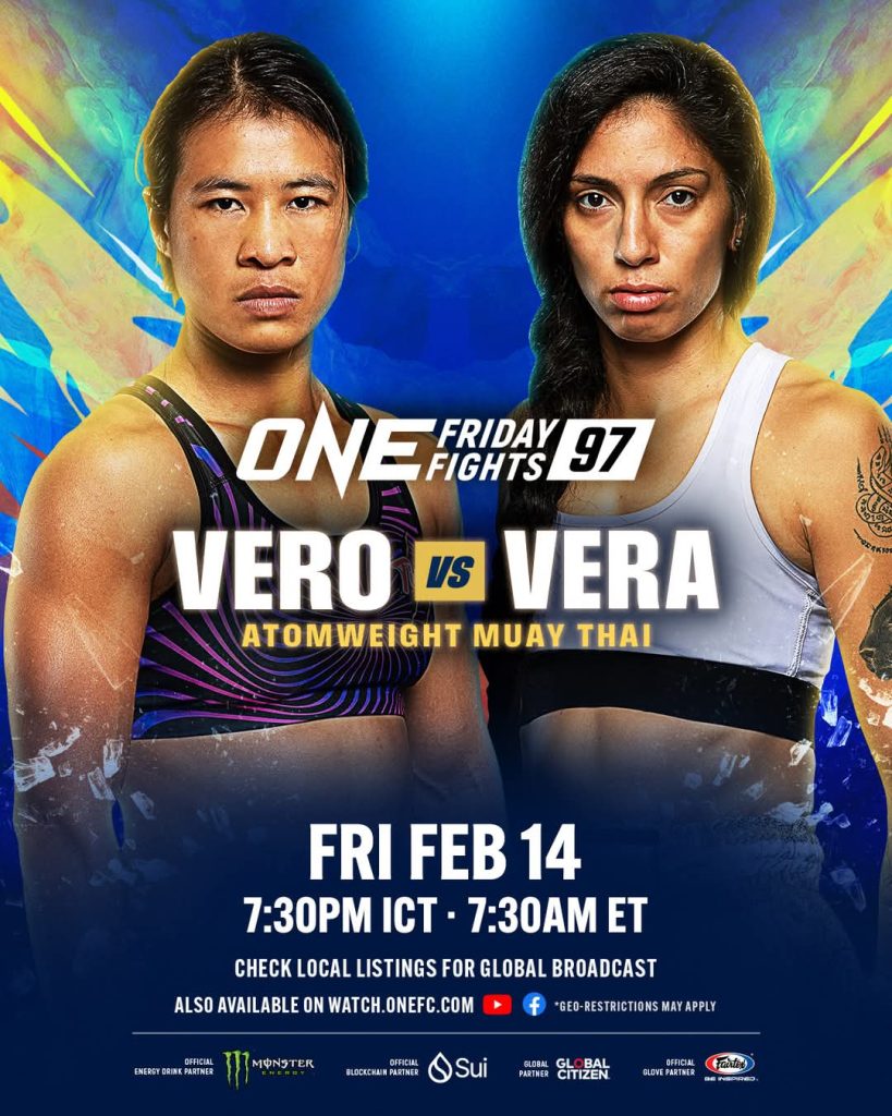 The two will fight in a 3-minute, 3-round Atomweight Muay Thai match at One Friday Fight 97 Valentine’s SAVAGERY at the Lumpinee Stadium in Bangkok, Thailand.