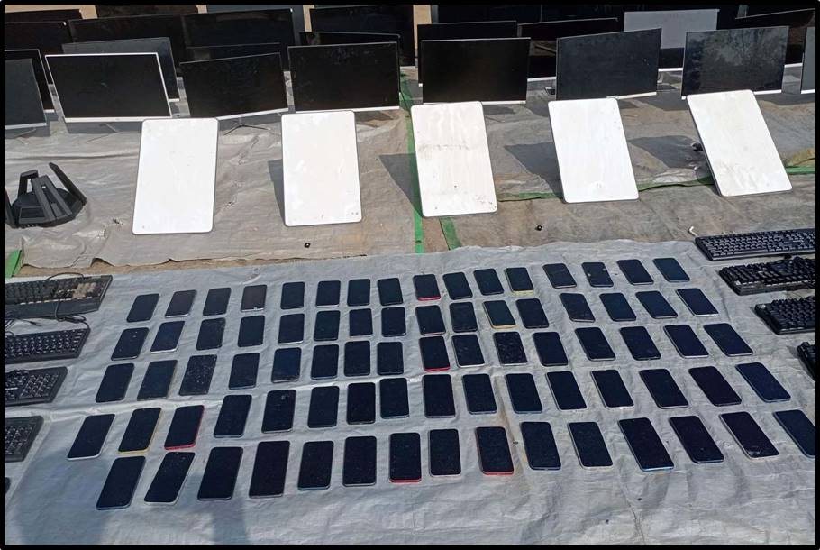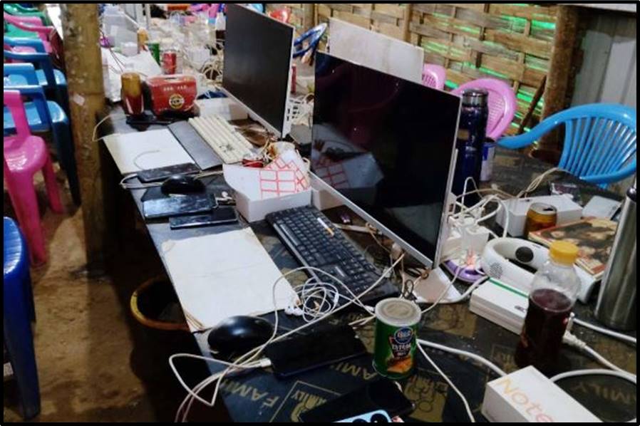 Furthermore, seven buildings used for Kyar Phyant operations near Naunghan Village, 181 assorted phones, 25 assorted laptops, 21 assorted deskops, 28 assorted keyboards, two Wifi routers, two sects of Star Link, electric equipment used for Kyar Phyant operations and one gun and five rounds of bullet were also seized.